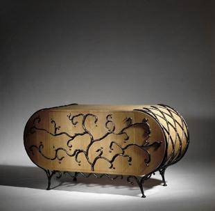 Notre équipe d'artiste ferronnier à Marseille réalise sur commande divers meubles en liant le bois et le fer forgé. Ici vous pouvez voir une de nos réalisations récente : Commode en chêne vernis et fer forgé.